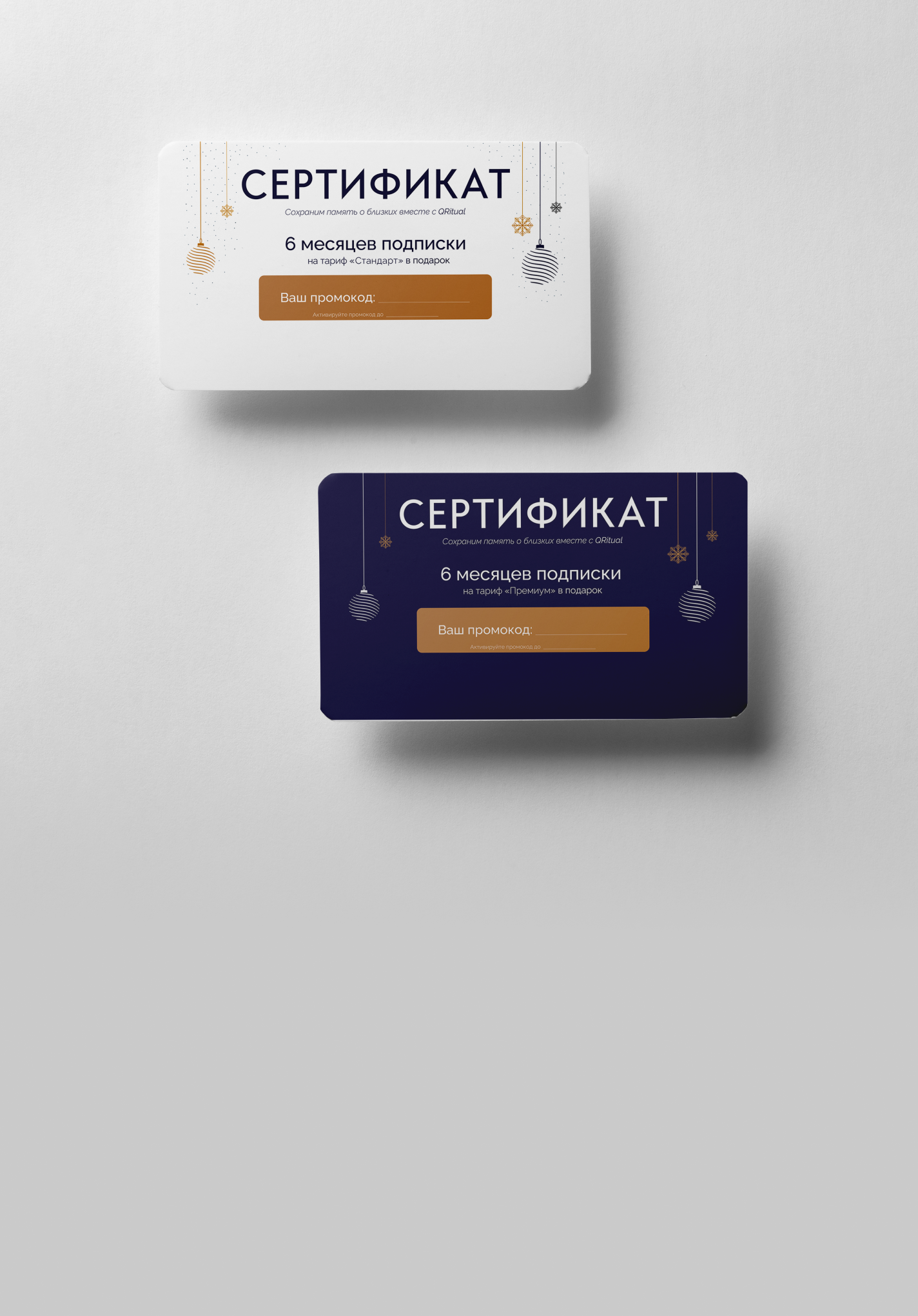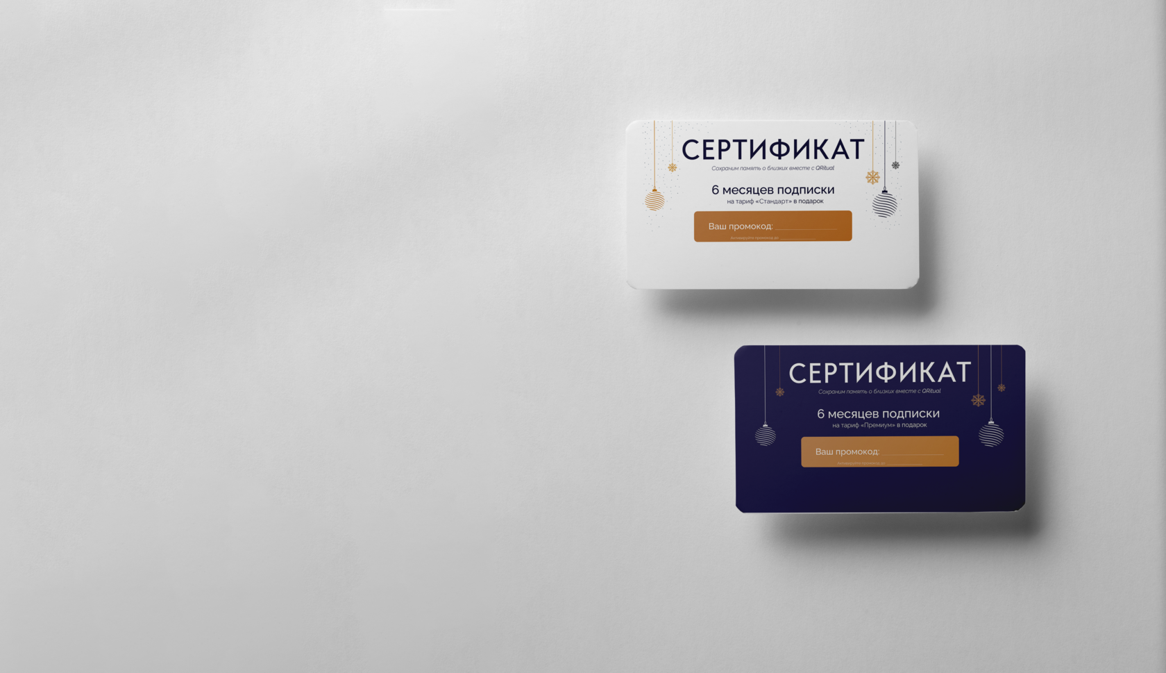 6 месяцев подписки на расширенный пакет услуг сервиса QRitual: 15 шаблонов, 70 фото, 10 видео. Добавьте сертификат в корзину и на моменте оплаты введите ваш промо-код.